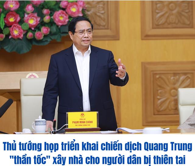 Thủ tướng Chính phủ nhấn mạnh “Chiến dịch Quang Trung” là chiến dịch không có tiếng súng, song phải chiến thắng và chiến thắng giòn giã để mang lại niềm vui, hạnh phúc cho người dân, nhất là những người không còn nhà ở, có nhà bị hư hỏng sau bão lũ lịch sử vừa qua. Do đó, cần thần tốc, thần tốc hơn nữa; thực hiện với tất cả trách nhiệm với người dân và bằng tất cả tình cảm từ trái tim, với mục tiêu hoàn thành xây mới nhà cho các hộ bị mất nhà trước ngày 31/1/2026 và hoàn thành sửa chữa nhà hư hỏng trước ngày 31/12/2025.