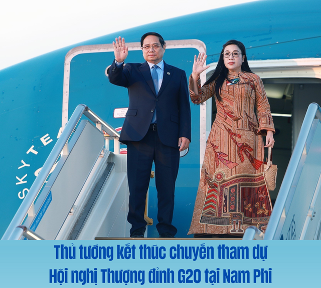Chiều 23/11/2025 (giờ địa phương), Thủ tướng Phạm Minh Chính và Phu nhân rời thành phố Johannesburg, Nam Phi, kết thúc chuyến tham dự Hội nghị Thượng đỉnh G20.