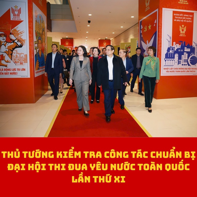 Sáng 26/12/2025, Thủ tướng Phạm Minh Chính, Chủ tịch Hội đồng Thi đua-Khen thưởng Trung ương đến kiểm tra công tác chuẩn bị Đại hội Thi đua yêu nước toàn quốc lần thứ XI diễn ra từ ngày 26-27/12/2025 tại Trung tâm Hội nghị quốc gia (Mỹ Đình, Hà Nội).