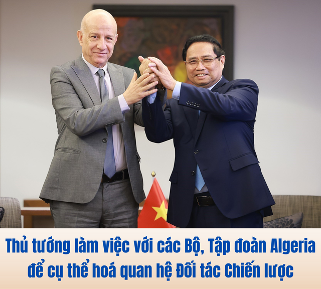 Trong chương trình thăm chính thức Cộng hoà Algeria, chiều 20/11, giờ địa phương, tại thủ đô Algiers, Thủ tướng Chính phủ Phạm Minh Chính đã làm việc với một số Bộ trưởng, lãnh đạo tập đoàn kinh tế, tổ chức của Algeria nhằm triển khai cụ thể hoá khuôn khổ quan hệ Đối tác Chiến lược Việt Nam – Algeria mà hai bên vừa nhất trí nâng cấp.