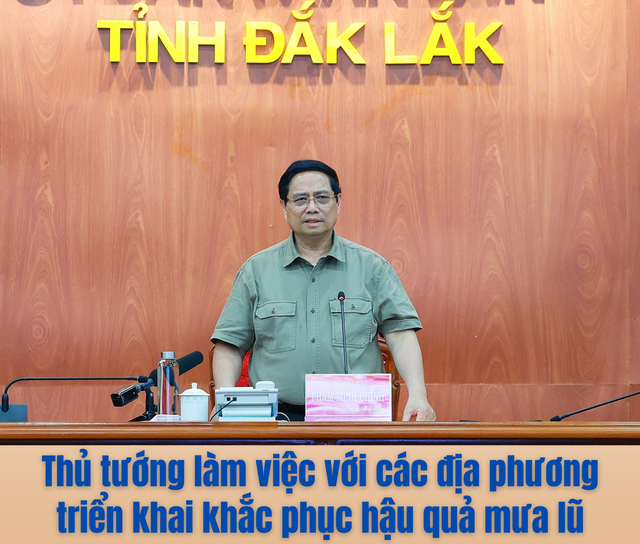 Tối 29/11, tại tỉnh Đắk Lắk, Thủ tướng Chính phủ Phạm Minh Chính và Đoàn công tác đã làm việc trực tiếp và trực tuyến với 4 tỉnh khu vực Nam Trung Bộ, gồm: Đắk Lắk, Khánh Hòa, Lâm Đồng, Gia Lai về công tác ứng phó, khắc phục hậu quả đợt mưa lũ vừa qua.