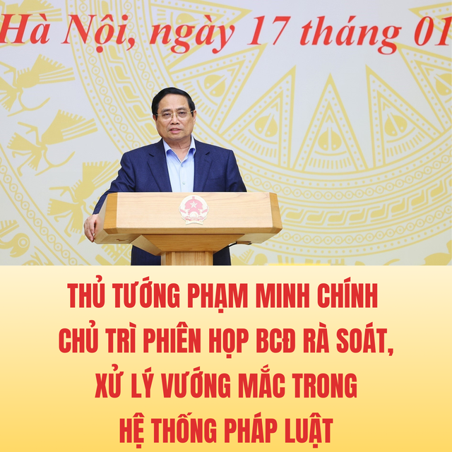 Chiều 17/1, Thủ tướng Chính phủ Phạm Minh Chính, Trưởng Ban Chỉ đạo của Chính phủ về rà soát và tổ chức thực hiện việc xử lý vướng mắc trong hệ thống pháp luật chủ trì Phiên họp thứ 7 Ban Chỉ đạo.