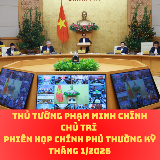 Chiều 4/2, Thủ tướng Chính phủ Phạm Minh Chính chủ trì Phiên họp Chính phủ thường kỳ tháng 1/2026, trực tuyến với các địa phương. Đây là phiên họp thường kỳ tháng đầu tiên của năm 2026, năm đầu tiên nhiệm kỳ 2026-2030 thực hiện Nghị quyết Đại hội lần thứ XIV của Đảng.