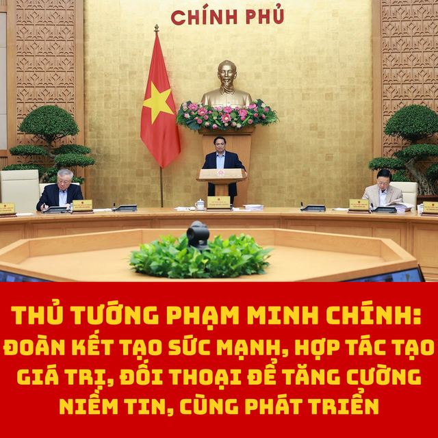 Thủ tướng Phạm Minh Chính nhấn mạnh tinh thần "đoàn kết tạo ra sức mạnh; hợp tác tạo giá trị gia tăng; luôn trao đổi, đối thoại để tăng cường niềm tin, hy vọng để cùng phát triển", các bộ, ngành, địa phương nỗ lực phấn đấu thực hiện thắng lợi các mục tiêu, nhiệm vụ năm 2025 và cả nhiệm kỳ 2021-2025, thi đua lập thành tích chào mừng Đại hội Đại biểu toàn quốc lần thứ XIV của Đảng.
