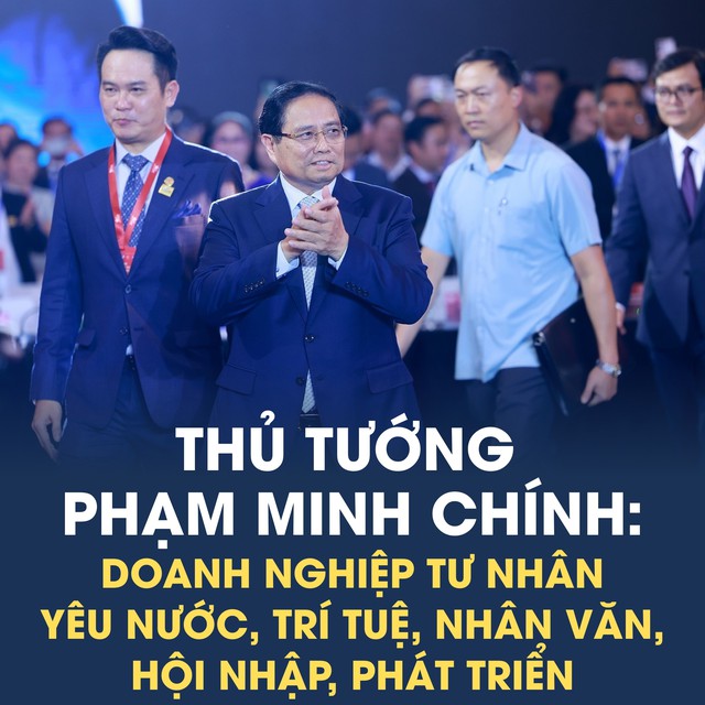 Thủ tướng Chính phủ mong muốn kinh tế tư nhân tiếp tục chấp hành nghiêm chủ trương, đường lối, chính sách, pháp luật của Đảng, Nhà nước; thể hiện đạo đức kinh doanh và trách nhiệm xã hội; đồng hành cùng Đảng, Nhà nước và nhân dân kiên trì, kiên định đường lối độc lập dân tộc và chủ nghĩa xã hội; tạo động lực, truyền cảm hứng, phát huy tinh thần đại đoàn kết toàn dân tộc; thể hiện sức mạnh doanh nhân, góp phần thúc đẩy sức mạnh của nhân dân, sức mạnh dân tộc; kết hợp sức mạnh dân tộc với sức mạnh thời đại, sức mạnh trong nước với sức mạnh ngoài nước; sức mạnh Nhà nước và sức mạnh nhân dân, doanh nghiệp; tiếp tục đổi mới tư duy và hành động quyết liệt vì lợi ích của quốc gia, dân tộc, và vì lợi ích của chính mình; với tầm nhìn xa, trông rộng, nghĩ sâu, làm lớn, phát triển nhanh, bền vững.