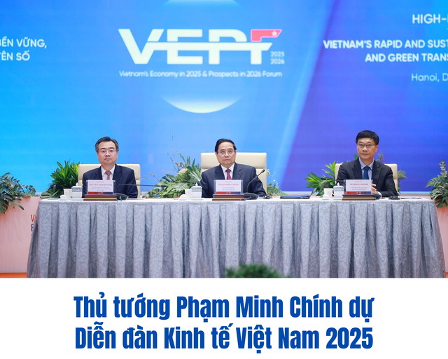Chiều 16/12/2025, tại Hà Nội, Thủ tướng Phạm Minh Chính tham dự Diễn đàn Kinh tế Việt Nam 2025, triển vọng 2026 với chủ đề "Kinh tế Việt Nam phát triển nhanh, bền vững, chuyển đổi xanh trong kỷ nguyên số".