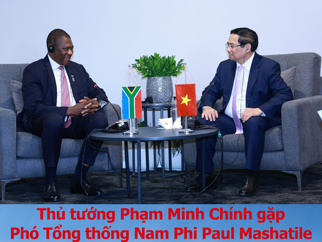 Sáng 21/11/2025 (giờ địa phương), tại thành phố Johannesburg, Thủ tướng Phạm Minh Chính gặp Phó Tổng thống Nam Phi Paul Mashatile.