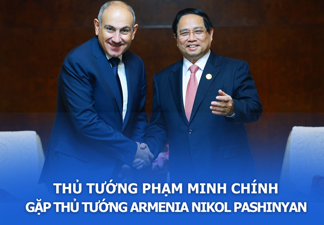 Thủ tướng Phạm Minh Chính gặp Thủ tướng Armenia Nikol Pashinyan. Ảnh: Dương Giang-TTXVN