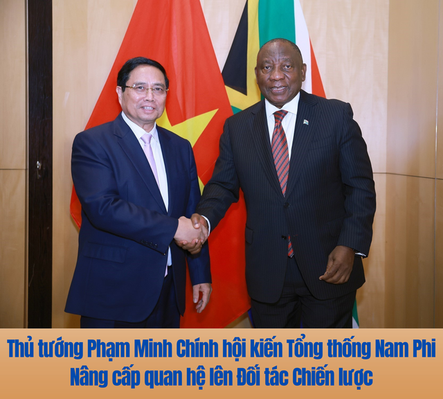 Triển khai cam kết trong chuyến thăm cấp Nhà nước của Tổng thống Nam Phi đến Việt Nam, Thủ tướng Chính phủ Phạm Minh Chính và Tổng thống Nam Phi Ciryl Ramaphosa đã chính thức tuyên bố nâng cấp quan hệ Việt Nam - Nam Phi lên Đối tác Chiến lược, dấu mốc lịch sử đưa quan hệ song phương đi vào chiều sâu, thực chất, hiệu quả, trên cơ sở tin cậy.