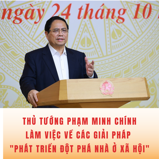 Sáng 24/10/2025, tại Hà Nội, Thủ tướng Phạm Minh Chính, Trưởng Ban Chỉ đạo Trung ương về chính sách nhà ở và thị trường bất động sản chủ trì làm việc với các bộ, ngành, địa phương và doanh nghiệp bất động sản về các giải pháp "phát triển đột phá nhà ở xã hội".