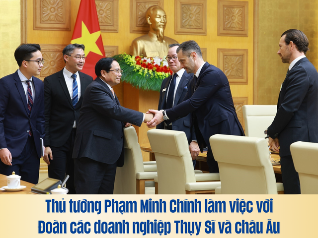 Đánh giá cao môi trường đầu tư tại Việt Nam, các doanh nghiệp Thụy Sĩ và châu Âu cho biết, có chiến lược hợp tác, đầu tư lâu dài tại Việt Nam, nhất là trong các lĩnh vực tài chính, dệt may, chống biến đổi khí hậu, giảm phát thải carbon, giảm phát thải khí metan, dược phẩm, công nghệ sinh học, công nghiệp bán dẫn và hệ sinh thái bán dẫn, cơ sở dữ liệu, trí tuệ nhân tạo (AI)… ; mong muốn Chính phủ tiếp tục hỗ trợ các doanh nghiệp Thụy Sĩ và châu Âu hợp tác đầu tư lâu dài tại Việt Nam, trong đó tiếp tục có các chính sách cởi mở, ưu đãi và ổn định, đơn giản hóa thủ tục hành chính, phát triển hệ sinh thái, các dịch vụ đi kèm, giúp các doanh nghiệp tối ưu hóa đầu tư…