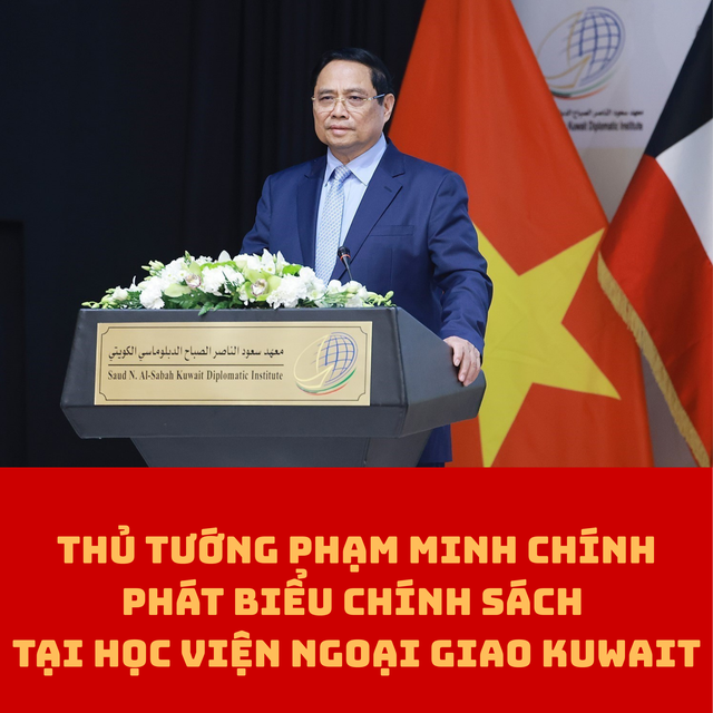 Tiếp tục chương trình thăm chính thức Kuwait, sáng 18/11/2025 (giờ địa phương), Thủ tướng Phạm Minh Chính đến thăm và phát biểu chính sách tại Học viện Ngoại giao Kuwait.