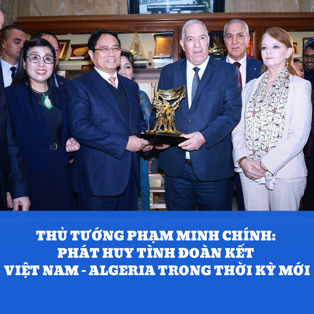 * Tiếp đó, Thủ tướng Chính phủ Phạm Minh Chính cùng Phu nhân và Đoàn đại biểu cấp cao Việt Nam thăm Bảo tàng quốc gia về Cựu chiến binh Algeria. Đây là một trong những bảo tàng văn hóa, lịch sử hàng đầu của Algeria, được khởi công xây dựng ngày 17/11/1981 và chính thức khánh thành ngày 1/11/1984, đúng dịp kỷ niệm 30 năm Ngày Khởi nghĩa giành độc lập của nhân dân Algeria chống thực dân Pháp.