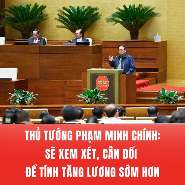 Tại phiên họp trong 2 ngày qua, có đại biểu Quốc hội nêu ý kiến đề xuất điều chỉnh tăng lương cơ sở từ ngày 1/1/2026; cho rằng điều này sẽ góp phần đảm bảo cuộc sống cho người hưởng lương và thu hút người tài làm việc trong cơ quan Nhà nước. Thủ tướng cho biết, theo kế hoạch, việc tăng lương thực hiện vào tháng 7/2026, nhưng sẽ xem xét, cân đối, xin ý kiến cấp có thẩm quyền, trong đó có Quốc hội để tính toán tăng lương sớm hơn.