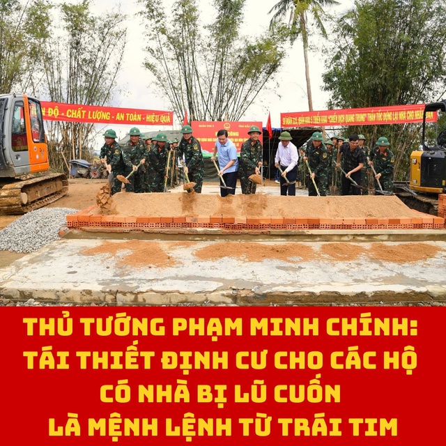 Thủ tướng Chính phủ nhấn mạnh đây là "Chiến dịch" không có tiếng súng, nhưng phải chiến thắng và chiến thắng giòn giã, phải quyết tâm hoàn thành việc sửa chữa, xây dựng lại nhà ở, đem lại niềm vui, hạnh phúc cho nhân dân, nhất là những gia đình không có nhà ở sau bão lũ lịch sử ở miền Trung theo chỉ đạo của Thủ tướng Chính phủ tại Công điện số 234/CĐ-TTg ngày 30/11/2025 và văn bản số 1551/TTg-NN ngày 3/12/2025 (hoàn thành việc sửa chữa nhà ở bị hư hỏng trước ngày 31/12/2025; xây dựng lại, tái định cư cho tất cả các hộ có nhà bị đổ, sập, lũ cuốn trôi trước ngày 31/1/2026). Các cấp ủy đảng, chính quyền, các cơ quan, đoàn thể, các lực lượng chức năng cần xác định đây không chỉ là nhiệm vụ chính trị, trách nhiệm bình thường, mà là mệnh lệnh từ trái tim đến trái tim, là tình cảm đối với nhân dân.