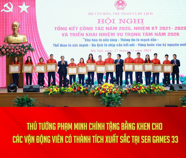 Chiều 27/12, Bộ Văn hóa, Thể thao và Du lịch đã công bố Quyết định và trao Bằng khen của Thủ tướng Chính phủ cho các cá nhân đạt thành tích xuất sắc tại SEA Games 33.