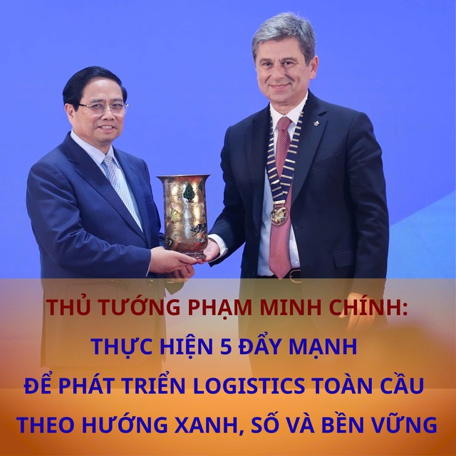Với mong muốn tăng cường hợp tác quốc tế trong lĩnh vực logistics để cùng phát triển ngành logistics quốc tế hiện đại, xanh, bền vững, Thủ tướng đề nghị cộng đồng FIATA và các doanh nghiệp quốc tế cùng với Việt Nam thực hiện 5 đẩy mạnh: Đẩy mạnh đổi mới sáng tạo, chuyển đổi số số trong logistics; đẩy mạnh hợp tác phát triển logistics xanh, bền vững; đẩy mạnh hợp tác đào tạo nguồn nhân lực chất lượng cao trong lĩnh vực logistics; đẩy mạnh kết nối các tuyến vận tải, các trung tâm logistics giữa các quốc gia, giữa các khu vực và toàn thế giới; đẩy mạnh kết nối logistics các phương thức vận tải.