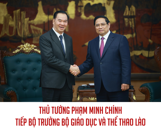 Thủ tướng Phạm Minh Chính tiếp Bộ trưởng Bộ Giáo dục và Thể thao Lào Thongsalith Mangnormek. Ảnh: Dương Giang-TTXVN