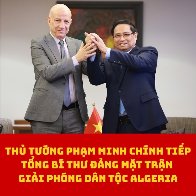 Nhân chuyến thăm chính thức Algeria, chiều 20/11/2025 (giờ địa phương), Thủ tướng Phạm Minh Chính tiếp Tổng Bí thư Đảng Mặt trận Giải phóng Dân tộc Algeria (FLN) Abdelkrim Benmbarek và chứng kiến Lễ ký Thoả thuận hợp tác giữa hai Đảng.