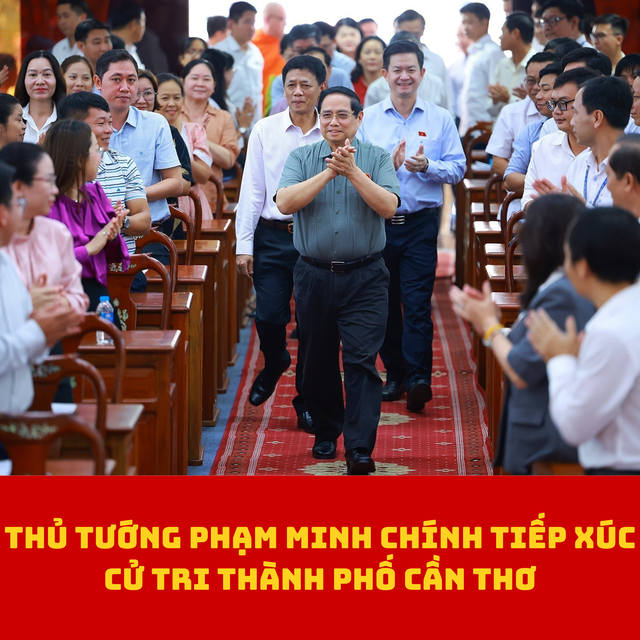 Thủ tướng Phạm Minh Chính tiếp xúc cử tri thành phố Cần Thơ chuyên đề về y tế và giáo dục. Ảnh: Dương Giang-TTXVN