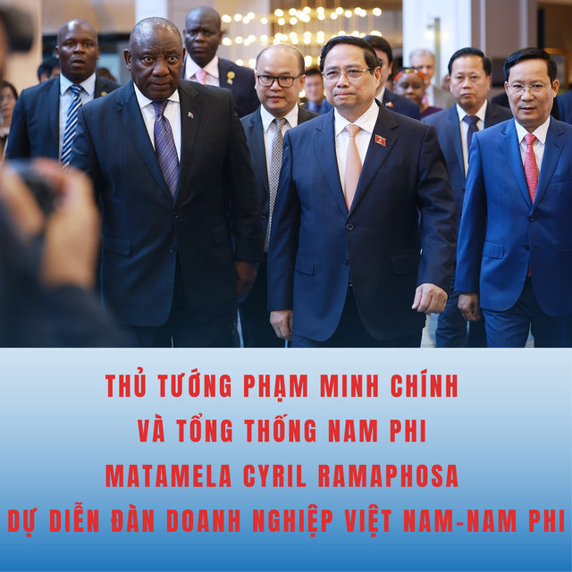 Chiều 24/10/2025, tại Hà Nội, Thủ tướng Phạm Minh Chính và Tổng thống Cộng hòa Nam Phi Matamela Cyril Ramaphosa dự Diễn đàn doanh nghiệp Việt Nam-Nam Phi.