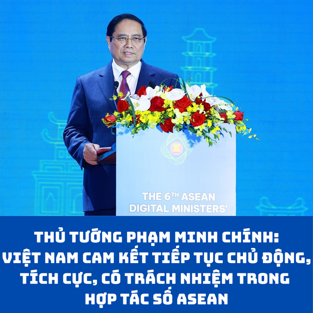 "Trên tinh thần "lợi ích hài hòa, rủi ro chia sẻ", Việt Nam cam kết tiếp tục là thành viên chủ động, tích cực và có trách nhiệm trong hợp tác số ASEAN. Chúng tôi sẵn sàng chia sẻ kinh nghiệm, hỗ trợ các nước còn khó khăn để thu hẹp khoảng cách số và cùng phát triển. Việt Nam mong muốn đẩy mạnh hợp tác toàn diện với các nước trên cơ sở minh bạch, tin cậy, tôn trọng lẫn nhau, cùng kiến tạo một Cộng đồng số ASEAN đoàn kết, tự cường, thịnh vượng", Thủ tướng Phạm Minh Chính nhấn mạnh.