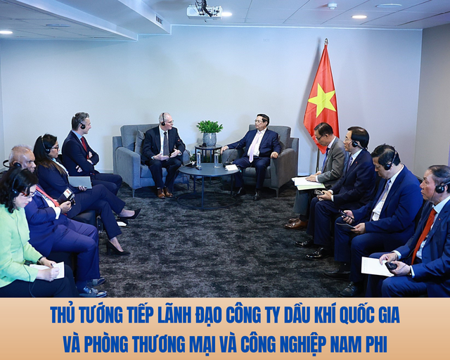 Sáng 21/11/2025 (giờ địa phương), tại thành phố Johannesburg, Thủ tướng Phạm Minh Chính tiếp bà Sesakho Magadla, Tổng Giám đốc điều hành Công ty Dầu khí Quốc gia Nam Phi.