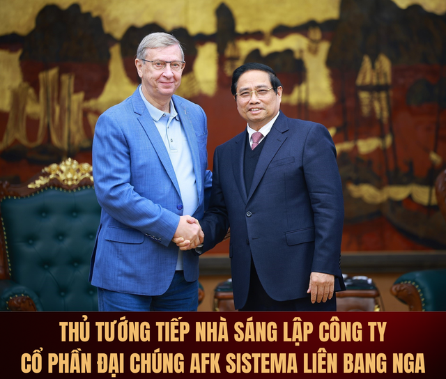 Tại cuộc tiếp, Thủ tướng Phạm Minh Chính nhấn mạnh, Việt Nam luôn coi trọng và mong muốn phát triển quan hệ hữu nghị truyền thống với Liên bang Nga; đánh giá cao Tập đoàn AFK Sistema phát triển nhanh và đã làm việc với các tập đoàn, doanh nghiệp lớn của Việt Nam để thúc đẩy quan hệ, hợp tác trên các lĩnh vực như định hướng đã được Tổng Bí thư Tô Lâm nêu tại chuyến thăm Nga hồi tháng 5/2025, thiết thực góp phần đưa quan hệ Đối tác chiến lược toàn diện Việt Nam - Nga đi vào chiều sâu, thực chất và hiệu quả hơn.