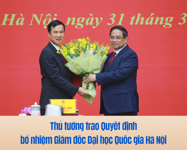 Thủ tướng Phạm Minh Chính trao Quyết định điều động, bổ nhiệm ông Bùi Thế Duy - Ủy viên dự khuyết Ban Chấp hành Trung ương Đảng, Phó chủ tịch Viện hàn lâm Khoa học và Công nghệ Việt Nam giữ chức Giám đốc Đại học Quốc gia Hà Nội. Ảnh: Dương Giang-TTXVN