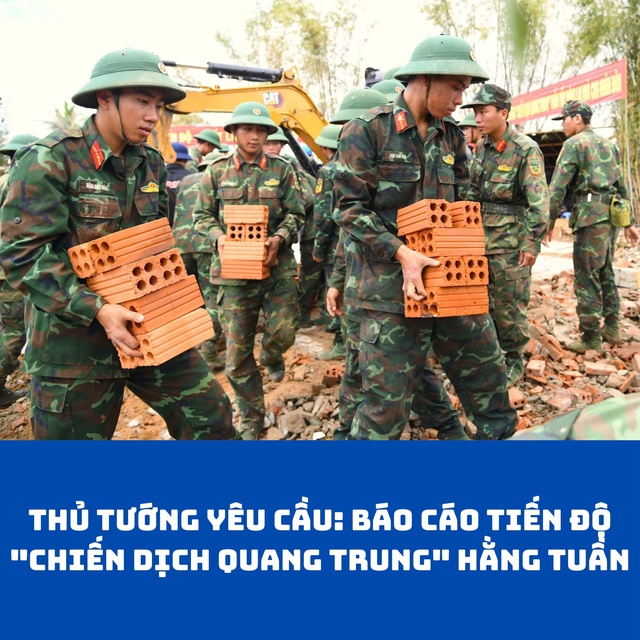 Tiếp theo Công điện số 234/CĐ-TTg ngày 30/11/2025 về việc phát động triển khai "Chiến dịch Quang Trung" thần tốc xây dựng lại, sửa chữa nhà ở cho các gia đình có nhà bị thiệt hại do các đợt thiên tai vừa qua tại các tỉnh miền Trung, để bảo đảm tiến độ xây dựng, sửa chữa nhà ở cho người dân bị ảnh hưởng bởi thiên tai, bão lũ, giúp người dân có chỗ ở ổn định, vui xuân đón năm mới 2026 và Tết Nguyên đán Bính Ngọ, Thủ tướng Chính phủ yêu cầu: