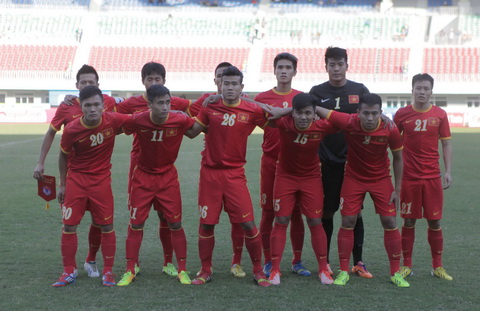 + Đội hình xuất phát của U23 Việt Nam: Bửu Ngọc, Quang Hùng, Mạnh Hùng, Tiến Thành, Đình Hoàng, Thanh Hiền, Vũ Minh Tuấn, Mạnh Dũng, Văn Quyết, Văn Thắng, Hà Minh Tuấn.