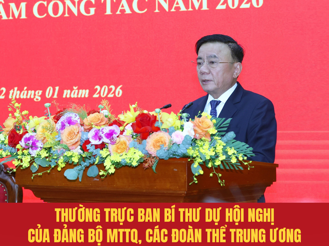 Sáng 12/1/2026, tại Hà Nội, đồng chí Trần Cẩm Tú, Ủy viên Bộ Chính trị, Thường trực Ban Bí thư dự và phát biểu chỉ đạo Hội nghị tổng kết công tác năm 2025, triển khai nhiệm vụ trọng tâm công tác năm 2026 Đảng bộ Mặt trận Tổ quốc, các đoàn thể Trung ương.