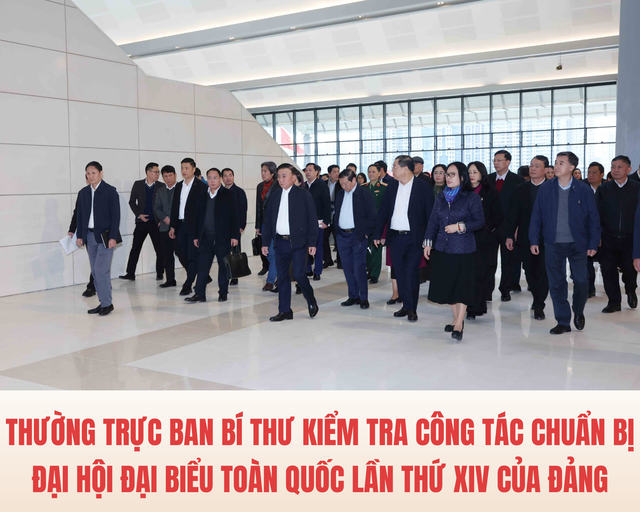 Chiều 06/1/2026, đồng chí Trần Cẩm Tú, Ủy viên Bộ Chính trị, Thường trực Ban Bí thư, Trưởng Tiểu ban Tổ chức phục vụ Đại hội cùng đoàn công tác kiểm tra công tác chuẩn bị Đại hội XIV của Đảng tại Trung tâm Hội nghị Quốc gia, Hà Nội.