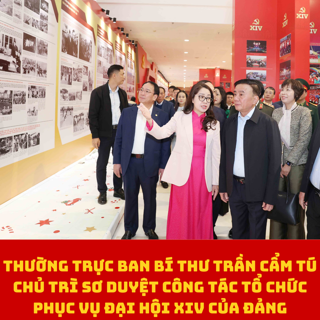 Sáng 13/1/2026, tại Trung tâm Hội nghị Quốc gia (Hà Nội), đồng chí Trần Cẩm Tú, Uỷ viên Bộ Chính trị, Thường trực Ban Bí thư, Trưởng Tiểu ban Tổ chức phục vụ Đại hội đại biểu toàn quốc lần thứ XIV của Đảng chủ trì sơ duyệt công tác tổ chức phục vụ Đại hội XIV của Đảng.
