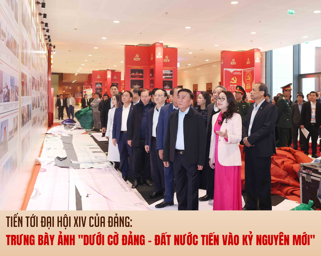 Chào mừng Đại hội đại biểu toàn quốc lần thứ XIV của Đảng Cộng sản Việt Nam, tại Trung tâm Hội nghị Quốc gia, Hà Nội, Thông tấn xã Việt Nam (TTXVN) tổ chức Trưng bày ảnh với chủ đề: "Dưới cờ Đảng - Đất nước tiến vào Kỷ nguyên mới".