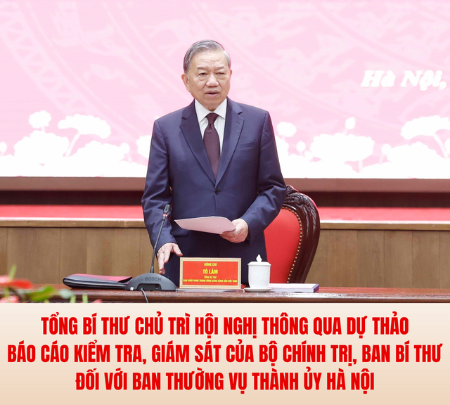 Chiều 30/3/2026, tại Hà Nội, Đoàn kiểm tra, giám sát số 10 của Bộ Chính trị, Ban Bí thư do Tổng Bí thư Tô Lâm làm Trưởng đoàn tổ chức Hội nghị thông qua dự thảo Báo cáo kiểm tra, giám sát đợt 1 và triển khai quyết định kiểm tra, giám sát đợt 2 của Bộ Chính trị, Ban Bí thư đối với Ban Thường vụ Thành ủy Hà Nội.