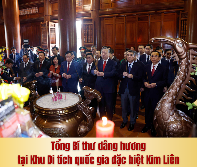 Hướng tới Kỷ niệm 96 năm Ngày thành lập Đảng Cộng sản Việt Nam (3/2/1930-3/2/2026) và chào mừng thành công Đại hội đại biểu toàn quốc lần thứ XIV của Đảng, sáng 29/1, tại Nghệ An, Tổng Bí thư Tô Lâm cùng Đoàn công tác Trung ương đã đến dâng hoa, dâng hương tưởng niệm Chủ tịch Hồ Chí Minh tại Đền Chung Sơn - Đền thờ Gia tiên Bác Hồ và tại Khu Di tích quốc gia đặc biệt Kim Liên (xã Kim Liên, tỉnh Nghệ An).