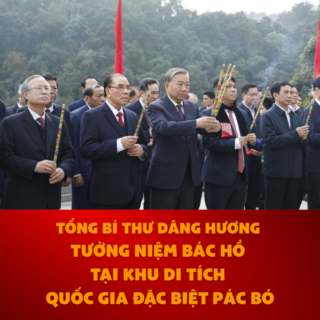 Chiều 28/1/2026, Tổng Bí thư Tô Lâm cùng đoàn công tác Trung ương tới dâng hoa, dâng hương tưởng niệm Chủ tịch Hồ Chí Minh tại Đền thờ Bác Hồ tại Khu Di tích quốc gia đặc biệt Pác Bó (Cao Bằng).