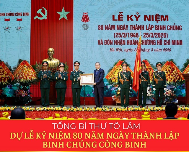 Sáng 22/3/2026, tại Hà Nội, Tổng Bí thư Tô Lâm, Bí thư Quân uỷ Trung ương dự Lễ kỷ niệm 80 năm Ngày thành lập Binh chủng Công binh (25/3/1946 - 25/3/2026) và đón nhận Huân chương Hồ Chí Minh.