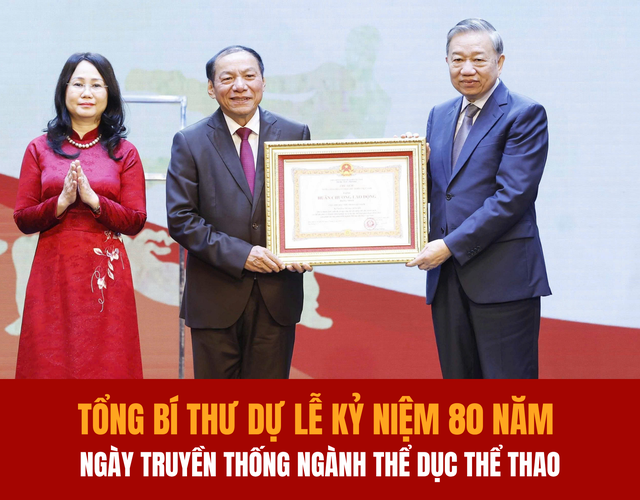 Phát biểu tại buổi Lễ, Tổng Bí thư Tô Lâm nêu rõ, thực hiện lời Bác dạy, Đảng và Nhà nước ta luôn luôn quan tâm lãnh đạo, chỉ đạo phát triển thể dục thể thao; từng bước xây dựng hệ thống tổ chức từ Trung ương đến địa phương; đào tạo đội ngũ cán bộ quản lý, huấn luyện viên, vận động viên, trọng tài; ban hành cơ chế, chính sách, pháp luật; đầu tư cơ sở vật chất, thiết chế, trang thiết bị; mở rộng hợp tác quốc tế; từng bước phát triển thể dục thể thao nước nhà theo hướng toàn dân, toàn diện và ngày càng chuyên nghiệp.