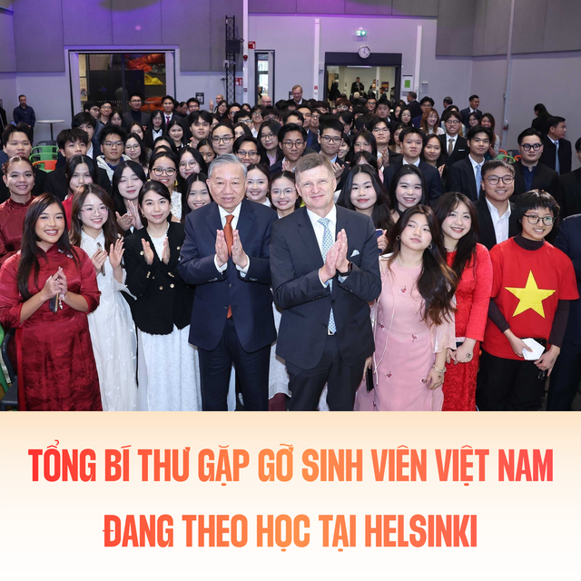 Trong chương trình chuyến thăm chính thức Phần Lan, sáng 22/10/2025 (giờ địa phương), tại Thủ đô Helsinki, Tổng Bí thư Tô Lâm gặp gỡ sinh viên Việt Nam đang theo học tại Helsinki.
