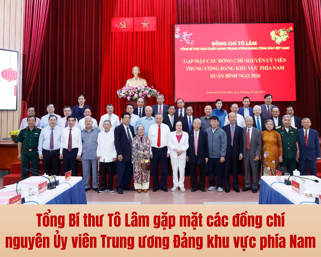 Nhân dịp kỷ niệm 96 năm ngày thành lập Đảng, mừng Xuân Bính Ngọ năm 2026, sáng 9/2, tại Thành phố Hồ Chí Minh, Tổng Bí thư Tô Lâm đã chủ trì buổi gặp mặt các đồng chí nguyên Ủy viên Trung ương Đảng các khóa khu vực phía Nam do điều kiện không tham dự cuộc gặp mặt tại Hà Nội.