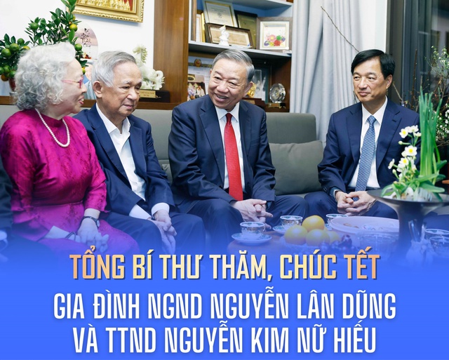 Tối 16/2/2026 (29 tháng Chạp), Tổng Bí thư Tô Lâm đến thăm, chúc Tết gia đình Giáo sư, Tiến sỹ, Nhà giáo Nhân dân Nguyễn Lân Dũng và Phó Giáo sư, Tiến sỹ, Thầy thuốc Nhân dân Nguyễn Kim Nữ Hiếu, nguyên Phó Giám đốc Bệnh viện Trung ương Quân đội 108, vừa được vinh danh là Công dân Thủ đô ưu tú năm 2025, tại phường Hai Bà Trưng, Hà Nội.