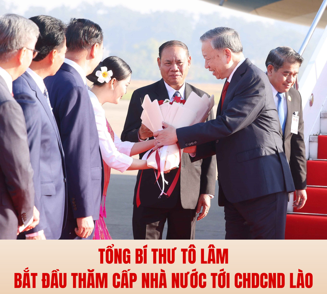 Sáng 5/2, chuyên cơ chở Tổng Bí thư Tô Lâm và đoàn đại biểu cấp cao Việt Nam đã đến sân bay quốc tế Wattay, thủ đô Viêng Chăn, bắt đầu chuyến thăm cấp Nhà nước tới Cộng hòa Dân chủ Nhân dân Lào, theo lời mời của Tổng Bí thư Ban Chấp hành Trung ương Đảng Nhân dân Cách mạng Lào, Chủ tịch nước Cộng hòa Dân chủ Nhân dân Lào Thongloun Sisoulith.