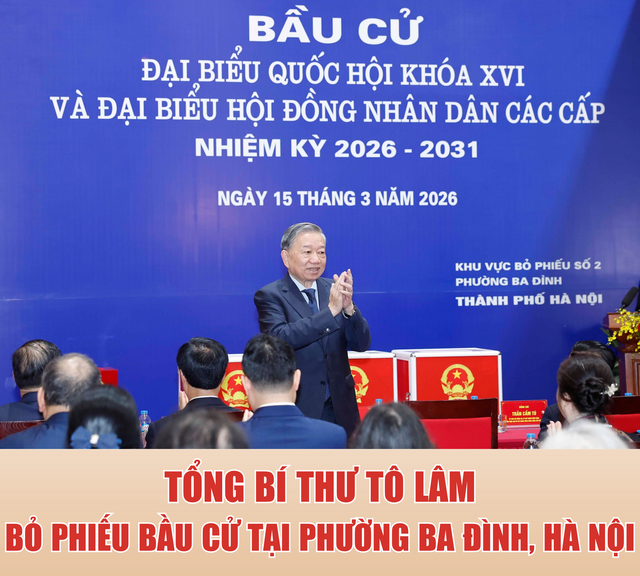 Sáng 15/3/2026, Tổng Bí thư Tô Lâm, Bí thư Quân ủy Trung ương đến bỏ phiếu bầu cử Đại biểu Quốc hội khóa XVI và Đại biểu Hội đồng nhân dân các cấp nhiệm kỳ 2026 - 2031 tại Khu vực bỏ phiếu số 02 phường Ba Đình, thành phố Hà Nội.