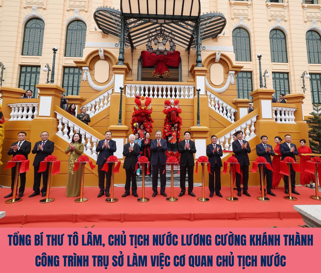 Chào mừng thành công Đại hội lần thứ XIV của Đảng và kỷ niệm 96 năm Ngày thành lập Đảng (3/2/1930-3/2/2026), sáng 2/2 tại Hà Nội, Tổng Bí thư Tô Lâm, Chủ tịch nước Lương Cường đã dự Lễ khánh thành dự án cải tạo, sửa chữa, nâng cấp, xây mới trụ sở làm việc Cơ quan Chủ tịch nước, tại số 2 Lê Thạch – Bắc Bộ phủ.