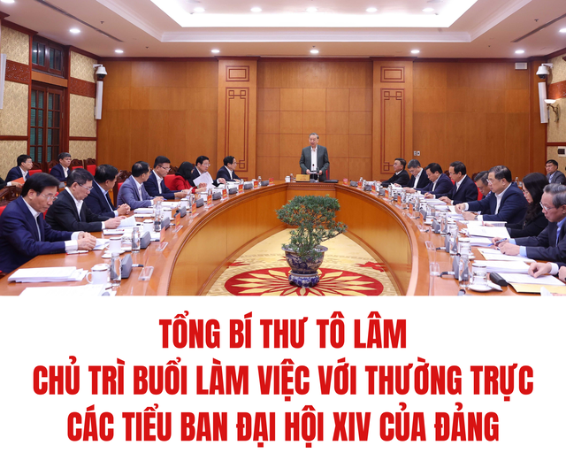 Sau khi nghe báo cáo và ý kiến phát biểu của các đại biểu dự họp, đồng chí Tổng Bí thư Tô Lâm thay mặt Bộ Chính trị, Ban Bí thư đánh giá cao kết quả và biểu dương những nỗ lực, cố gắng, tinh thần trách nhiệm cao với công việc của các Tiểu ban; đề nghị các Tiểu ban tiếp tục chỉ đạo quyết liệt để hoàn thành mọi nội dung công việc đúng tiến độ, chuẩn bị thật tốt các điều kiện để tổ chức thành công Đại hội XIV của Đảng.