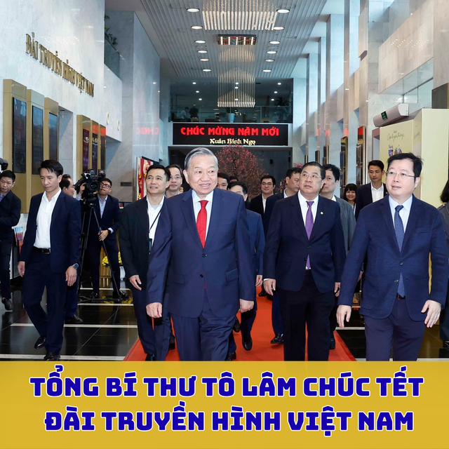 Trong không khí mừng Đảng, mừng Xuân, chào mừng thành công Đại hội toàn quốc lần thứ XIV của Đảng và chuẩn bị đón Tết Nguyên đán Bính Ngọ, sáng 14/2/2026, tại Hà Nội, Tổng Bí thư Tô Lâm tới thăm, chúc Tết cán bộ, phóng viên, biên tập viên, kỹ thuật viên và người lao động Đài Truyền hình Việt Nam.