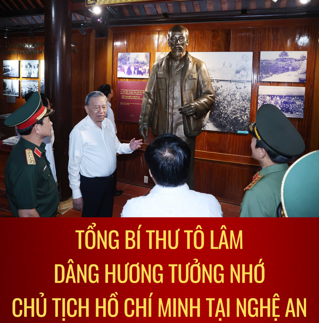 Chiều 11/10, trong chuyến công tác tại Nghệ An, Tổng Bí thư Tô Lâm và Đoàn công tác của Trung ương đã đến dâng hoa, dâng hương tại Đền Chung Sơn - Đền thờ Gia tiên Bác Hồ và tại Khu Di tích Quốc gia Đặc biệt Kim Liên, tỉnh Nghệ An.