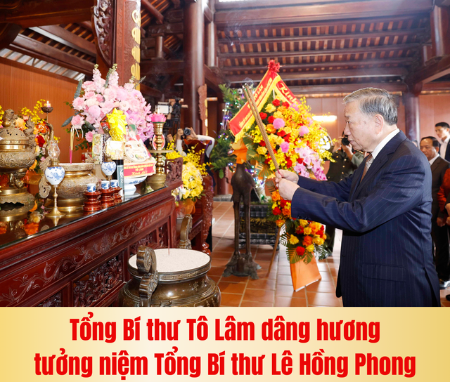 Tổng Bí thư Tô Lâm cùng Đoàn công tác đã đến dâng hoa, dâng hương tại Khu lưu niệm Tổng Bí thư Lê Hồng Phong, bày tỏ lòng thành kính, biết ơn vô hạn đối với công lao to lớn của Tổng Bí thư Lê Hồng Phong và các Anh hùng liệt sĩ đã hiến dâng trọn đời mình cho sự nghiệp đấu tranh giải phóng dân tộc, cho hòa bình và hạnh phúc của nhân dân.
